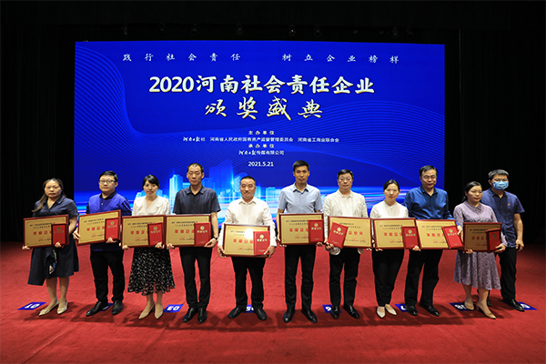 近日,“‘2020河南社會(huì)責(zé)任企業(yè)’推選活動(dòng)”獲獎(jiǎng)名單公布,我司榜上有名,榮獲年度企業(yè)獎(jiǎng)。