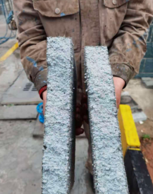 生產(chǎn)線上一臺嶄新的氮氣機吸引了記者的注意?!斑@可是我們最重要的‘法寶’之一。”趙振波說,當(dāng)時,生產(chǎn)線建成之后,他們滿心歡喜地實驗時,卻發(fā)現(xiàn)水泥經(jīng)過加水球磨后,產(chǎn)生“水化熱”,坯體中心溫度會高達80攝氏度以上,有時候甚至達到93攝氏度。“溫度過高,成型的時候就會膨脹,坯體就會開裂。這個問題不解決,意味著前期的一切研究成果都是徒勞的。”