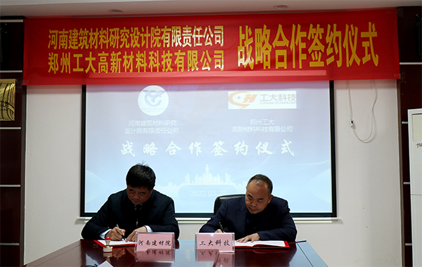 28日下午,河南建筑材料研究設(shè)計(jì)院有限責(zé)任公司(簡稱“河南建材院”)和鄭州工大高新材料科技有限公司(簡稱“鄭州工大科技”)戰(zhàn)略合作協(xié)議簽署儀式在河南建材院二樓會議室舉行。