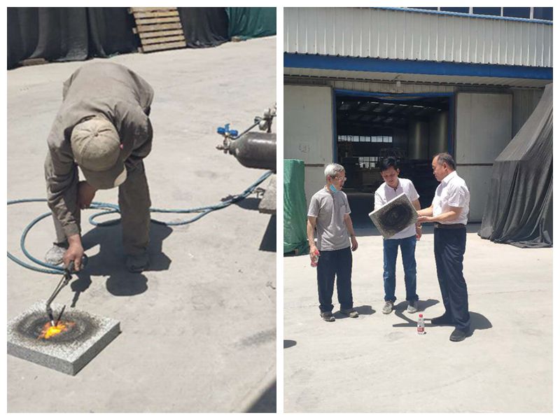 隨后,工廠的技術(shù)人員現(xiàn)場做了產(chǎn)品耐火耐高溫和防水試驗(yàn)。